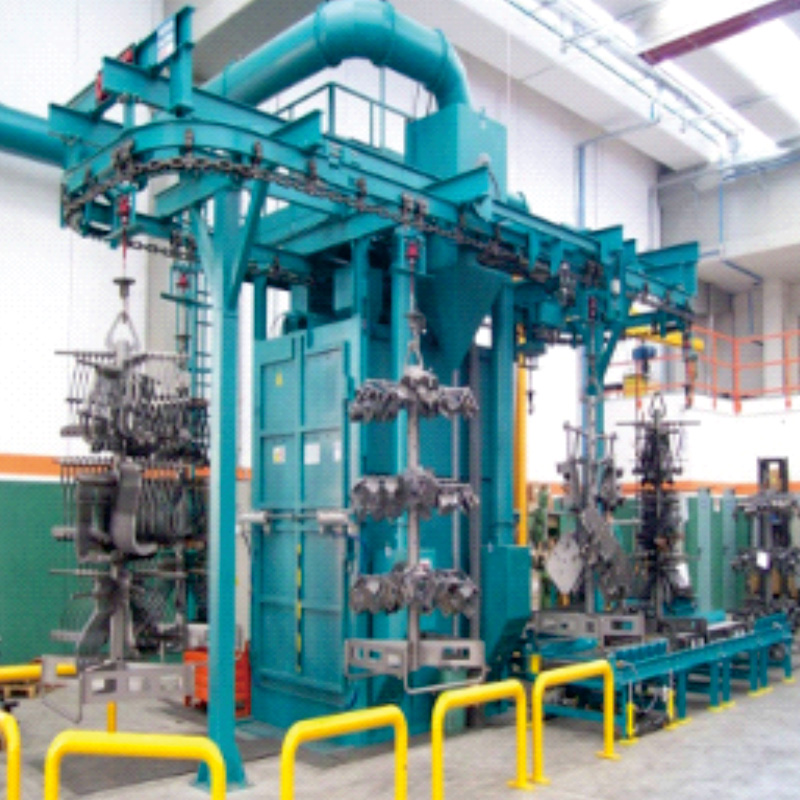 The Q38 series overhead rail shot blasting machine is suitable for cleaning cast steel, cast iron, and metal structural parts used in small mining machinery. It mainly employs high